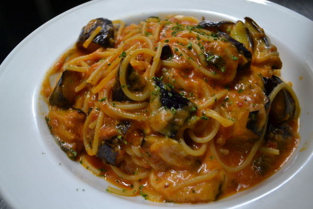 パスタは、金のモッツアレラをふんだんに使った「なすと金のモッツアレラのトマトソース シチリア風」。