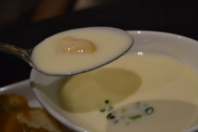 生ウニがころっと入っているヴィシソワーズ。ヴィシソワーズとは、フランス語で冷製のポタージュという意味ですが、ポタージュの中にとろっとしたウニが出てきて、味わい深かったです。