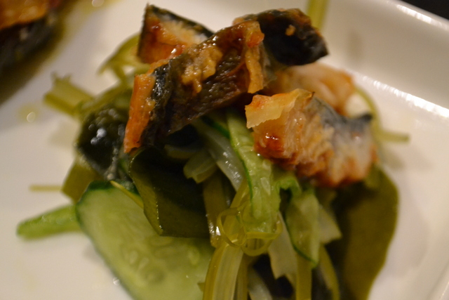洋野町の剣山ワカメを使ったうざく。剣山ワカメはその名の通り、剣山のような道具でわかめの茎を裂いたもの。茎ワカメ好きな私にとっては、ずっと食べていたい逸品でしたね^^