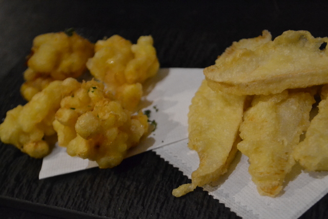 次に出てきたのは、洋野町で産地化を目指している「あわび茸」。このあわび茸は、もともとは内モンゴルが原産地なのですが、10年前くらいから洋野町で生産を始め、ようやく安定した収穫が出来るようになったものです。これまでは、水煮や冷凍でしか流通していなかったのですが、これからは生でも提供できるようになったもので、その初めての生のあわび茸をフリットでいただきました!